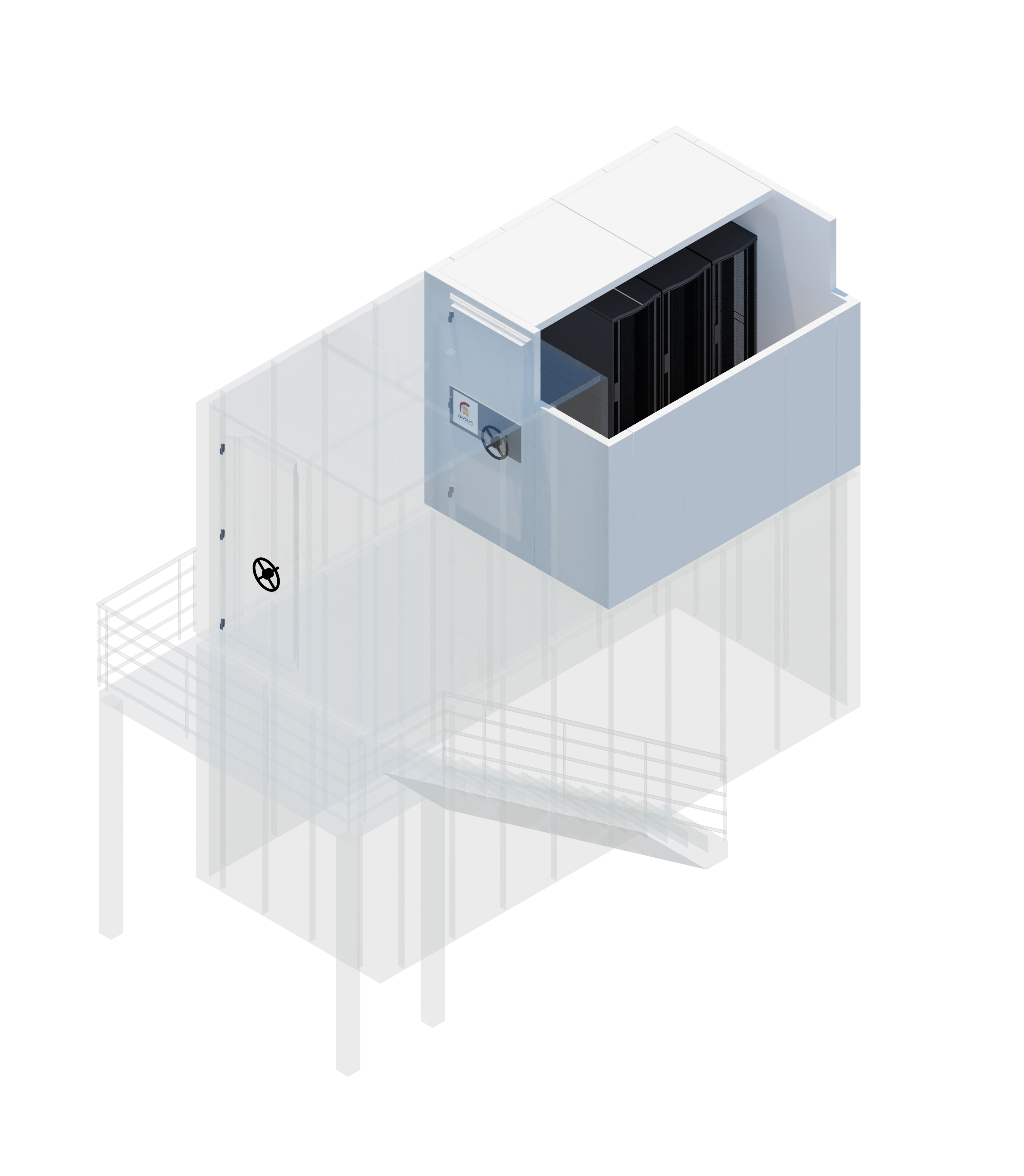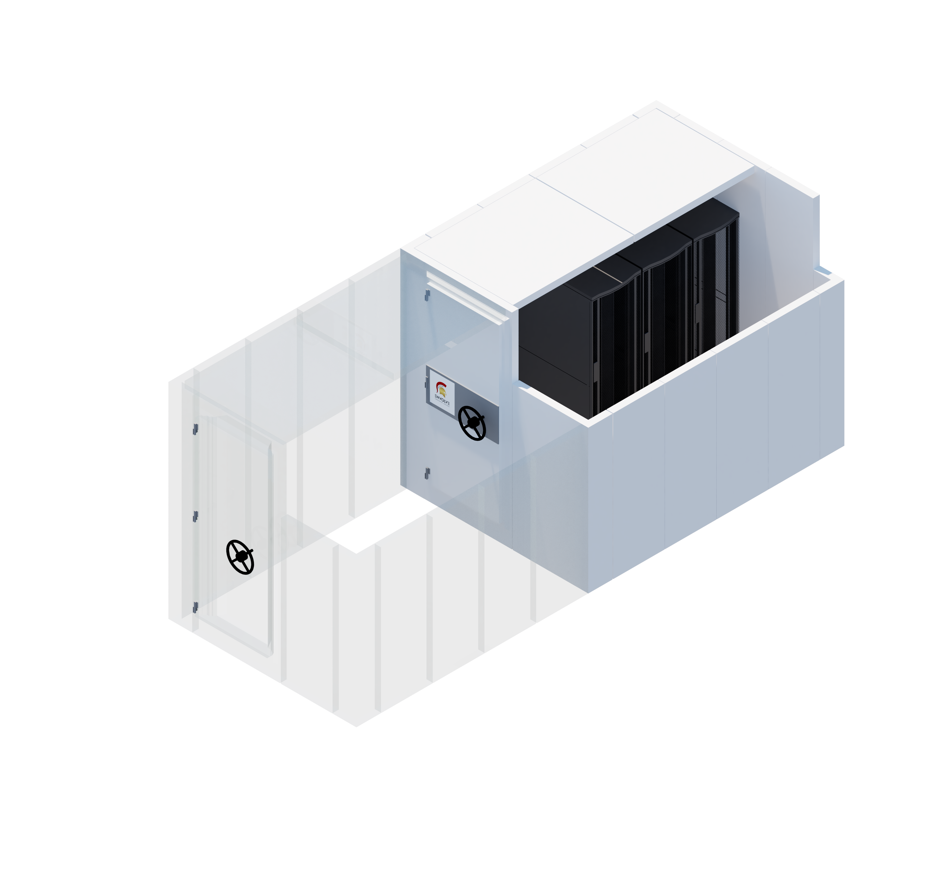 Sistema composto por painéis modulares, para proteção física de suas informações, TI, equipamentos, bens e outros, formando um ambiente completamente independente da estrutura existente.